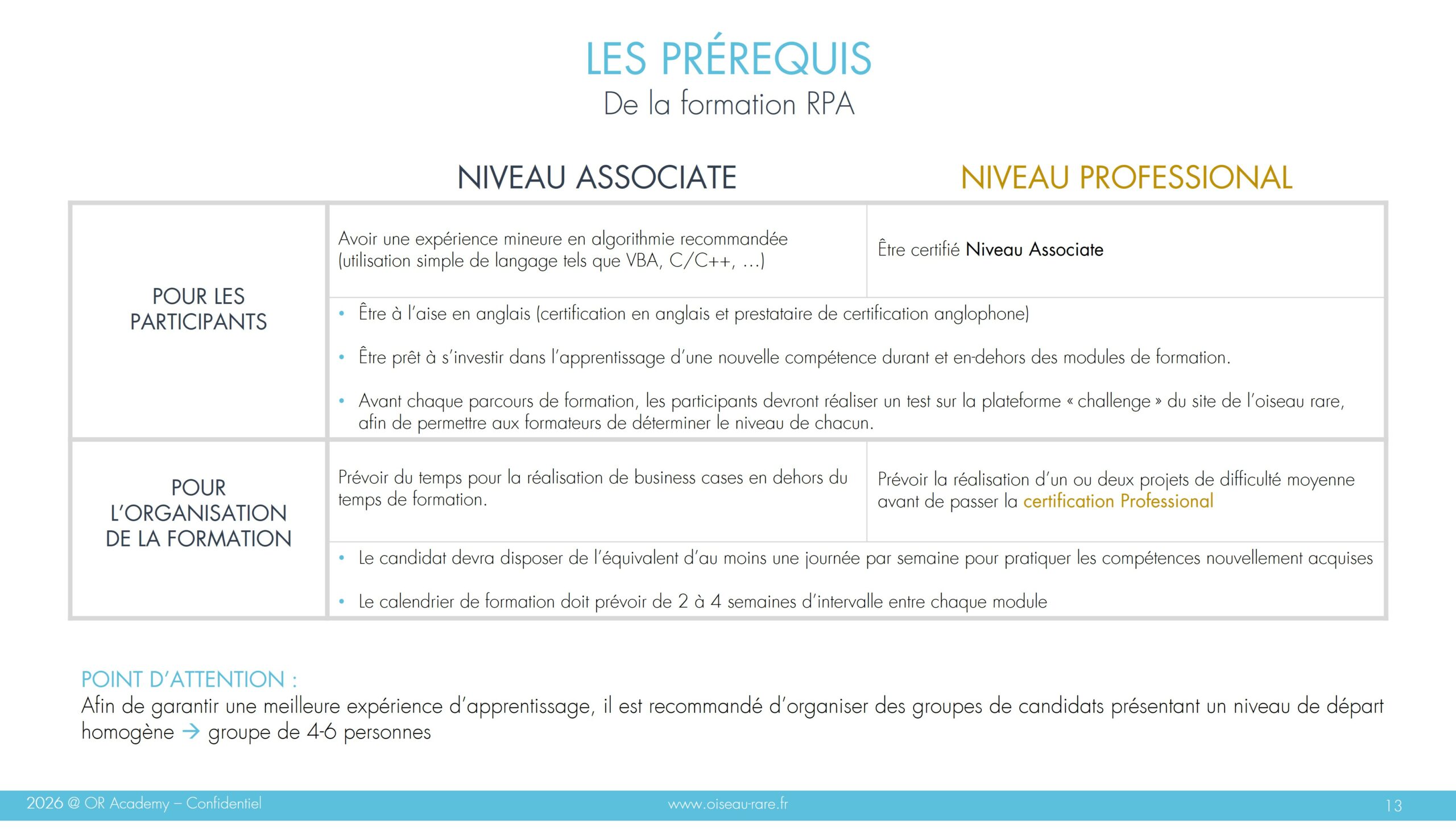 Le programme de la formation OR Academy offre une immersion complète dans les concepts et les outils de l’automatisation des processus robotiques (RPA). En combinant des cours théoriques et des exercices pratiques, les participants acquièrent les compétences nécessaires pour concevoir, développer et déployer des robots logiciels efficaces.